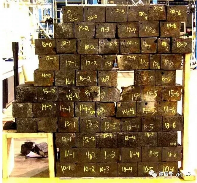 (2)在炭磚過薄的情況下,熱面壓漿壓力過高,疑將殘磚推向爐內。這從壓漿后7#風口全黑(估計所壓漿料沿殘磚內側上到風口),在風口發(fā)黑后9小時燒穿以及燒穿口內大面積已無殘存炭磚可以證明(如為熔損,破損口應呈喇叭形,不應大面積無磚)。
