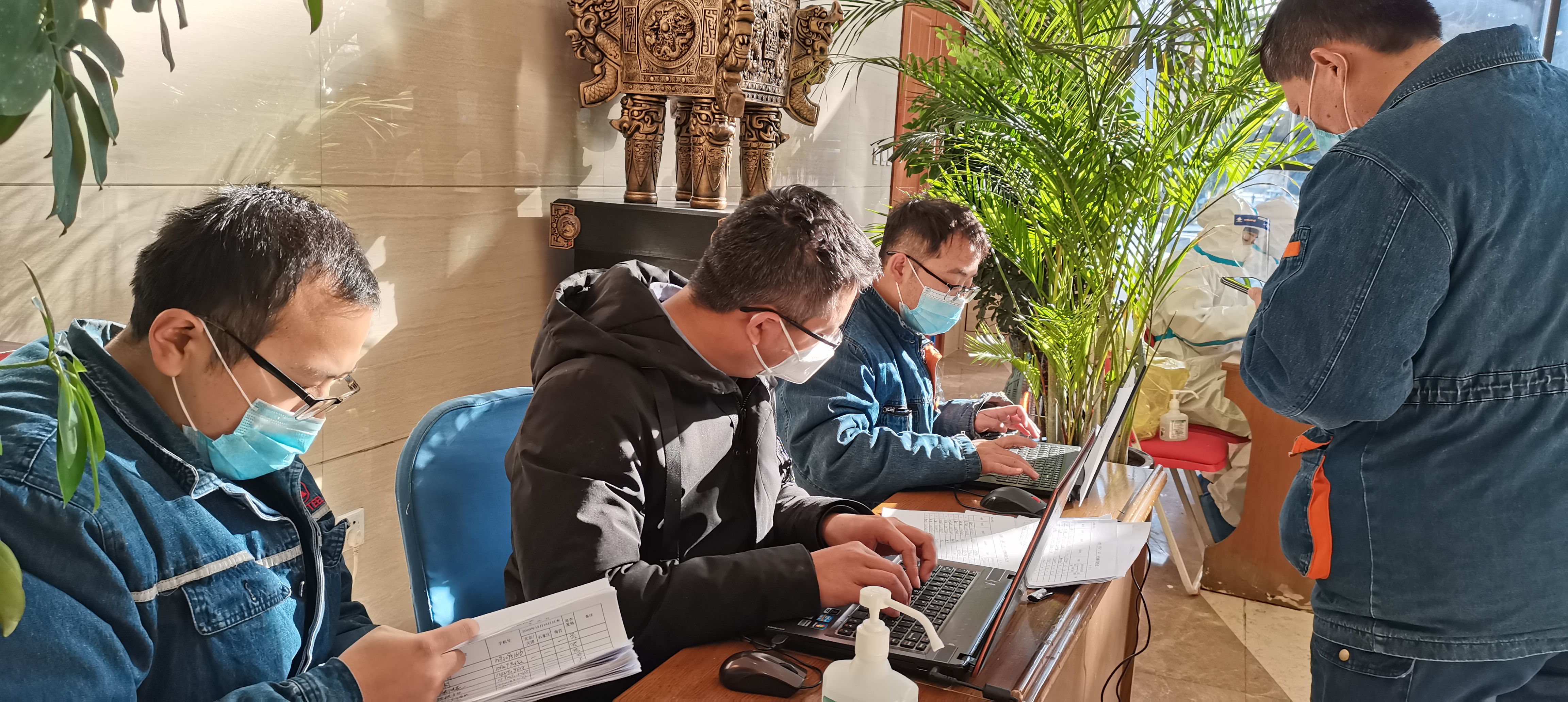 強(qiáng)化使命擔(dān)當(dāng), 筑牢疫情防控強(qiáng)大防線,發(fā)揮黨組織戰(zhàn)斗堡壘作用和黨員模范作用。1月5日下午,黨委書記王春雨帶領(lǐng)公司疫情防控辦公室成員,先后深入眾鑫食堂、公司各大門,檢查疫情防控工作落實(shí)情況。要求食堂嚴(yán)密防控傳染源,最大限度降低交叉?zhèn)魅撅L(fēng)險(xiǎn),規(guī)范衛(wèi)生管理和清洗消毒,讓職工吃得安全、放心;在公司各大門崗位,防控組認(rèn)真查看了進(jìn)入人員登記檢查情況和體溫儀、消毒器具的配備使用情況。