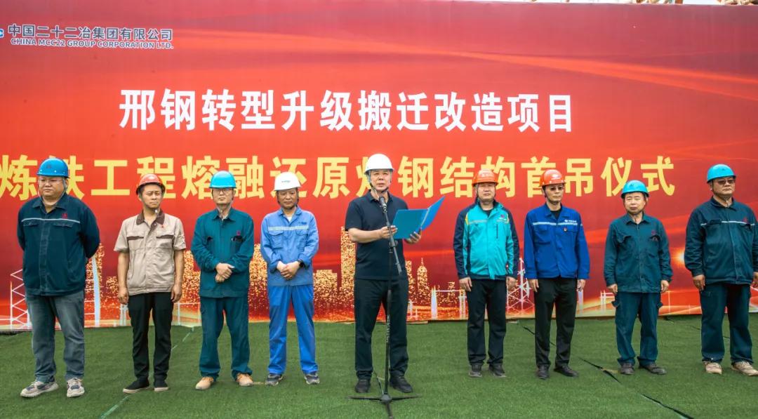 7月8日上午11時(shí),威縣項(xiàng)目地?zé)掕F區(qū)域彩旗招展、掌聲雷動(dòng),邢鋼轉(zhuǎn)型升級(jí)搬遷改造項(xiàng)目再次新突破:在邢鋼公司黨委書(shū)記、董事長(zhǎng)張育明及總經(jīng)理彭世丹、副總經(jīng)理馬保良、柳萬(wàn)超、韓清連與施工單位項(xiàng)目負(fù)責(zé)人的共同見(jiàn)證下 ,重約46噸的熔融還原爐爐底板鋼結(jié)構(gòu)緩緩升起、平穩(wěn)吊移,精確就位完成吊裝。邢鋼搬遷項(xiàng)目熔融還原爐正式進(jìn)入安裝階段,為公司高質(zhì)量發(fā)展注入了新的綠色動(dòng)能。