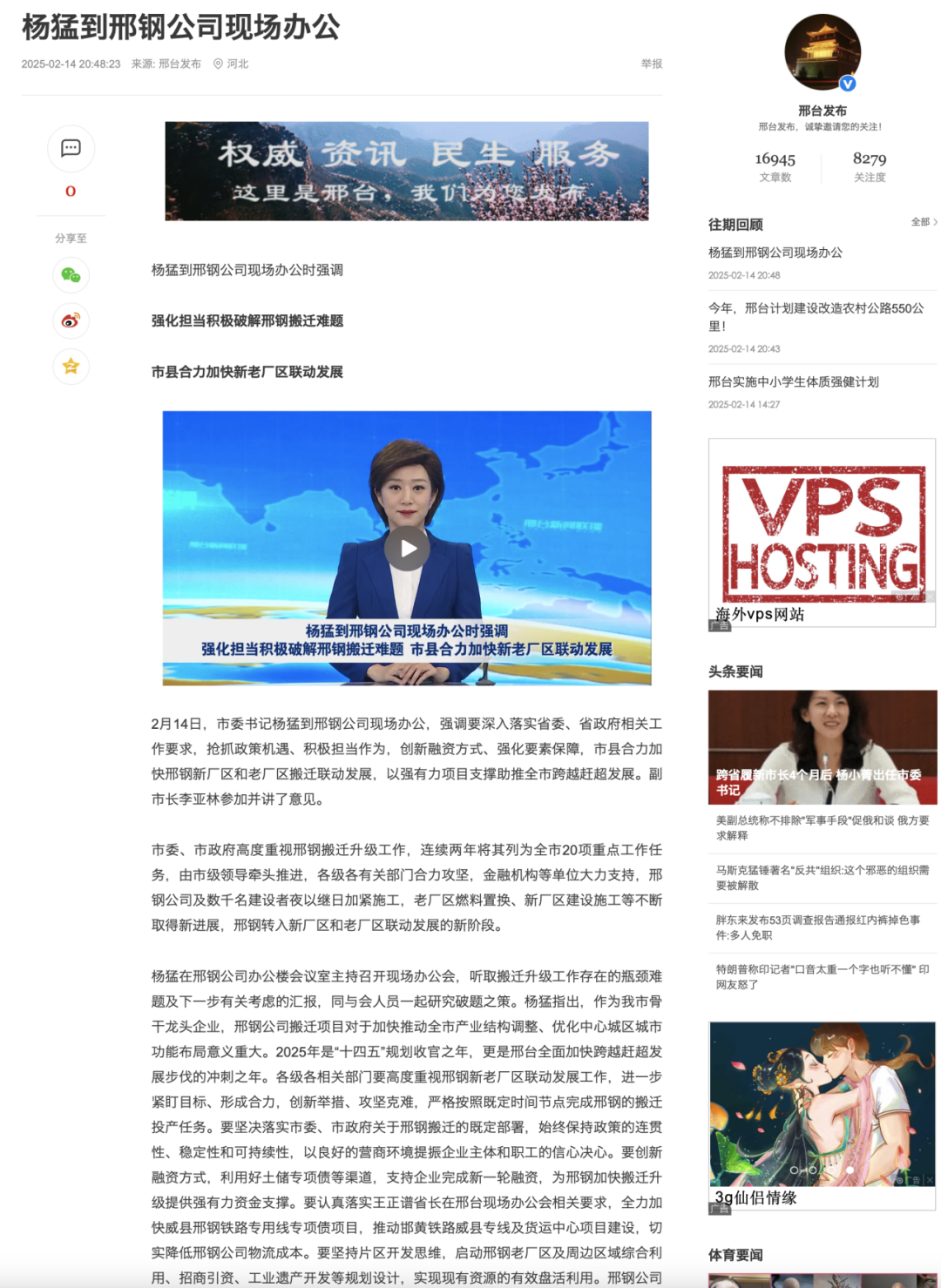 楊猛在邢鋼公司辦公樓會(huì)議室主持召開現(xiàn)場(chǎng)辦公會(huì),聽取搬遷升級(jí)工作存在的瓶頸難題及下一步有關(guān)考慮的匯報(bào),同與會(huì)人員一起研究破題之策。楊猛指出,作為我市骨干龍頭企業(yè),邢鋼公司搬遷項(xiàng)目對(duì)于加快推動(dòng)全市產(chǎn)業(yè)結(jié)構(gòu)調(diào)整、優(yōu)化中心城區(qū)城市功能布局意義重大。2025年是“十四五”規(guī)劃收官之年,更是邢臺(tái)全面加快跨越趕超發(fā)展步伐的沖刺之年。各級(jí)各相關(guān)部門要高度重視邢鋼新老廠區(qū)聯(lián)動(dòng)發(fā)展工作,進(jìn)一步緊盯目標(biāo)、形成合力,創(chuàng)新舉措、攻堅(jiān)克難,嚴(yán)格按照既定時(shí)間節(jié)點(diǎn)完成邢鋼的搬遷投產(chǎn)任務(wù)。要堅(jiān)決落實(shí)市委、市政府關(guān)于邢鋼搬遷的既定部署,始終保持政策的連貫性、穩(wěn)定性和可持續(xù)性,以良好的營(yíng)商環(huán)境提振企業(yè)主體和職工的信心決心。要?jiǎng)?chuàng)新融資方式,利用好土儲(chǔ)專項(xiàng)債等渠道,支持企業(yè)完成新一輪融資,為邢鋼加快搬遷升級(jí)提供強(qiáng)有力資金支撐。要認(rèn)真落實(shí)王正譜省長(zhǎng)在邢臺(tái)現(xiàn)場(chǎng)辦公會(huì)相關(guān)要求,全力加快威縣邢鋼鐵路專用線專項(xiàng)債項(xiàng)目,推動(dòng)邯黃鐵路威縣專線及貨運(yùn)中心項(xiàng)目建設(shè),切實(shí)降低邢鋼公司物流成本。要堅(jiān)持片區(qū)開發(fā)思維,啟動(dòng)邢鋼老廠區(qū)及周邊區(qū)域綜合利用、招商引資、工業(yè)遺產(chǎn)開發(fā)等規(guī)劃設(shè)計(jì),實(shí)現(xiàn)現(xiàn)有資源的有效盤活利用。邢鋼公司要堅(jiān)定信心,千方百計(jì)推進(jìn)搬遷升級(jí)項(xiàng)目早投產(chǎn)、早見效,在項(xiàng)目建設(shè)中當(dāng)先鋒、挑大梁,為投資消費(fèi)質(zhì)效年貢獻(xiàn)力量。