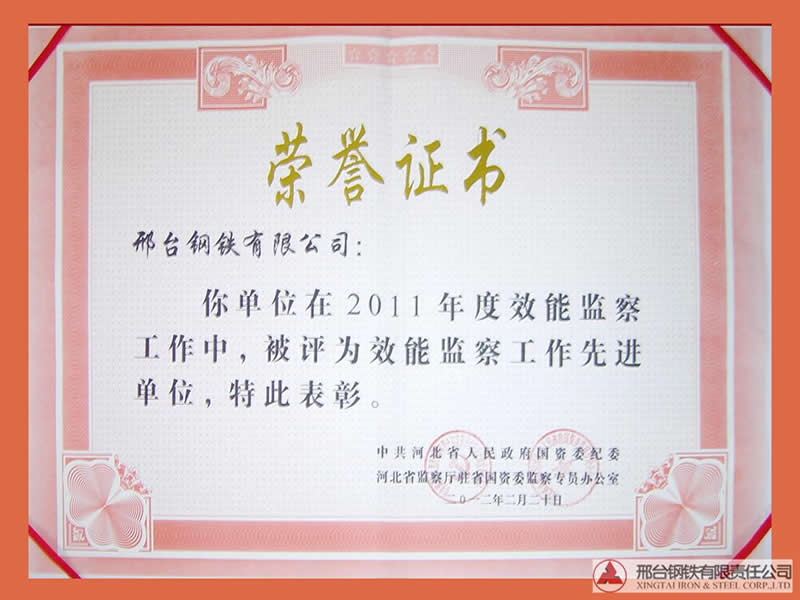 Xingtai Steel passed the verification of Energy Management System Certification of Beijing Grand Honour Management System Certification Co., Ltd in March and April and awarded the certificate on 28th May, 2012.