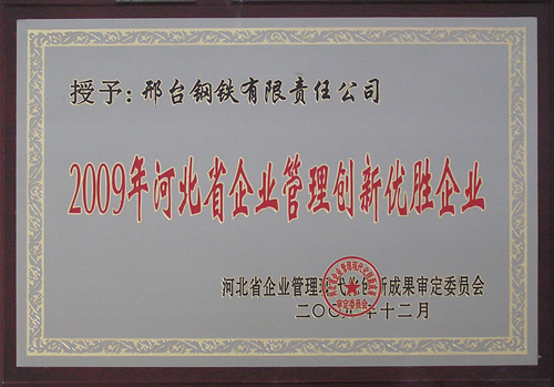 Xingtai Steel was awarded the Management Excellent Enterprise of Hebei Province in 2009.