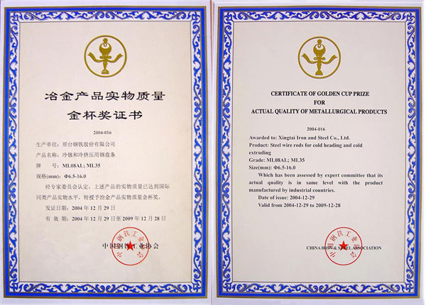 冷鐓和冷擠壓用鋼盤(pán)條ML08AL,ML35獲冶金產(chǎn)品實(shí)物質(zhì)量金杯獎(jiǎng)