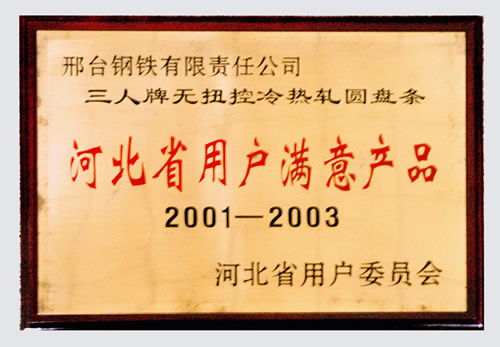 三人牌無(wú)扭控冷熱軋圓盤(pán)條被評(píng)為河北省用戶滿意產(chǎn)品