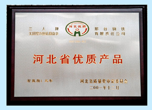 三人牌無扭控冷熱軋圓盤條獲河北省優(yōu)質(zhì)產(chǎn)品