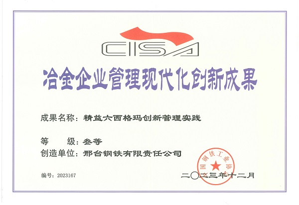 - 邢鋼一項成果榮獲“2024年中國質(zhì)量創(chuàng)新與質(zhì)量改進成果發(fā)表交流活動…