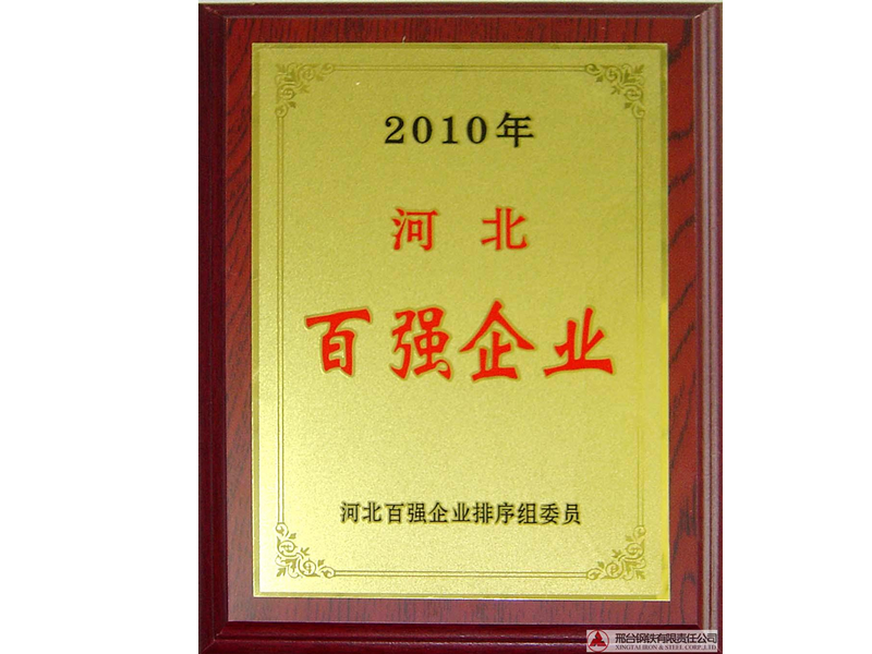 2011年2月17日,邢鋼榮獲2010年“河北省百強企業(yè)”榮譽稱號。