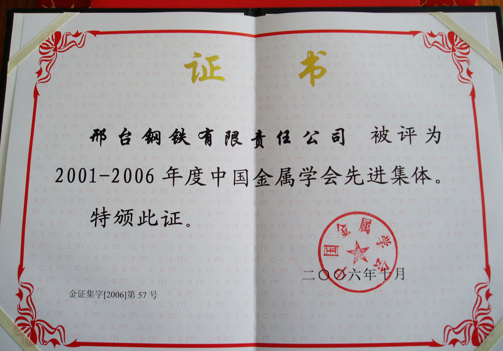 2007年3月,邢鋼獲得由河北省企業(yè)聯(lián)合會(huì)頒發(fā)的“河北省明星企業(yè)”榮譽(yù)稱號(hào)。