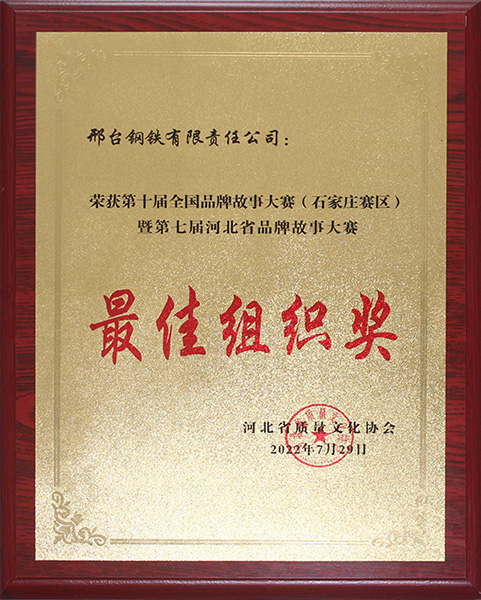 - 邢鋼榮獲“第七屆河北省品牌故事大賽最佳組織獎”