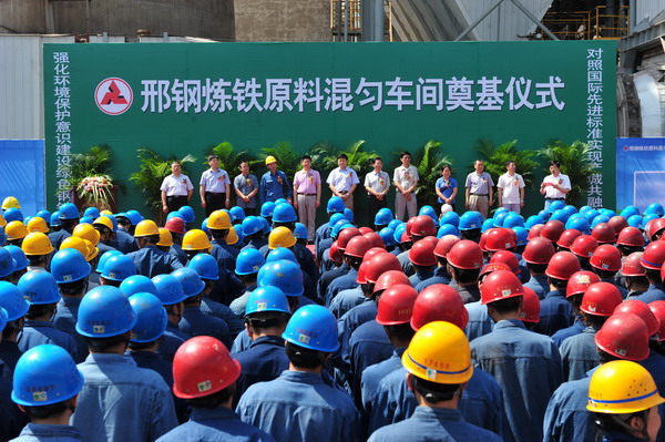 6月9日上午,邢鋼在煉鐵廠原料混勻車間舉行了全封閉式料場奠基儀式?;靹蛄蠄鋈忾]工程是邢鋼2015年實(shí)施的14項(xiàng)環(huán)境深度美化治理重點(diǎn)項(xiàng)目之一,邢鋼還將進(jìn)一步實(shí)施噴吹煤全封閉料倉、無組織揚(yáng)塵面源封閉、廠容廠貌深度治理等一系列環(huán)保項(xiàng)目。