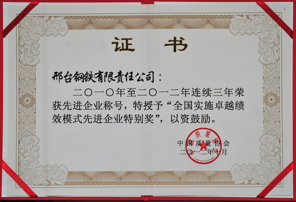 10月24-25日,第十二屆全國追求卓越大會于北京召開。會議舉行了隆重的頒獎儀式,對獲獎企業(yè)進(jìn)行了表彰,我公司再度榮獲“全國質(zhì)量獎鼓勵獎”,并獲“全國實(shí)施卓越績效模式先進(jìn)企業(yè)特別獎”。