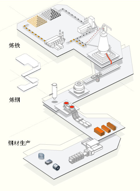 主要產(chǎn)品是生鐵,副產(chǎn)品有爐渣和爐氣。