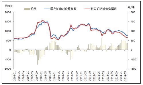 圖5:進(jìn)口礦和國產(chǎn)礦絕對價(jià)格指數(shù)