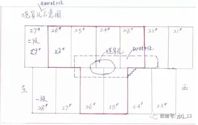 燒穿位置在3-4段冷卻壁之間,32-33號風口下方,距離1號鐵口左側1800㎜左右。偏下方800 ㎜。爐缸無冷卻壁,冷卻方式為爐皮外加冷卻水套,總水量450立。