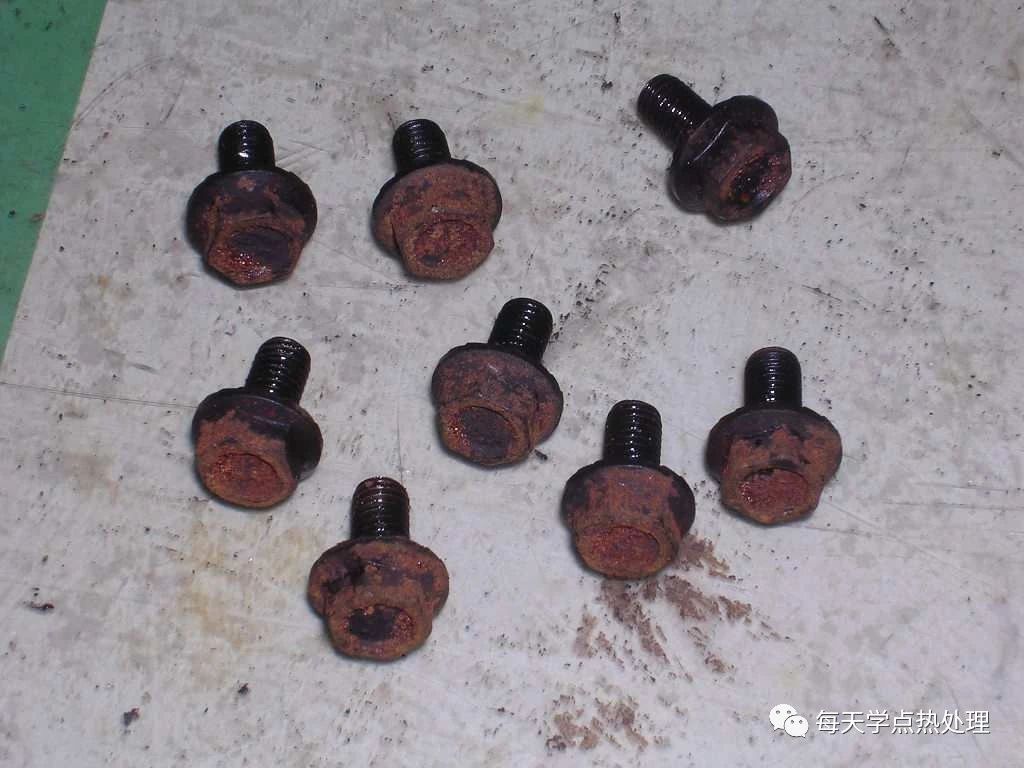 發(fā)黑后,清洗不徹底。防止這種缺陷的根本措施就是保持清洗槽的潔凈以及零件發(fā)黑時充分清洗干凈。
