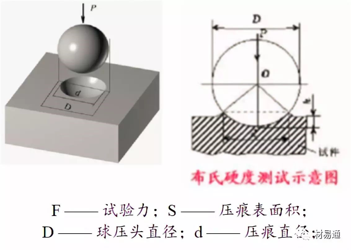 原理:用一定直徑的壓頭(球體),以相應試驗力壓入待測表面,保持規(guī)定時間卸載后,測量材料表面壓痕直徑,以此計算出硬度值。