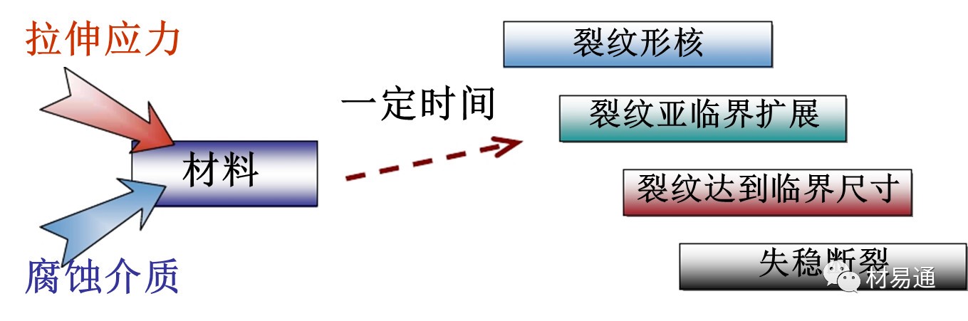 應(yīng)力腐蝕產(chǎn)生的條件:敏感的金屬材料、特定的腐蝕介質(zhì)、足夠大的應(yīng)力。