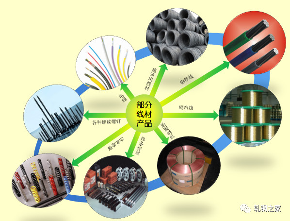 線材的用途非常廣泛,除建筑用線材等可直接被應用的成品之外,一般都要經(jīng)過深加工才能制成產(chǎn)品。深加工的方式有熱鍛、溫鍛、冷鍛、拉拔、擠壓、回轉成形和切削等,為了便于進行這些深加工,加工之前需要進行退火、酸洗等處理。加工后為保證使用時的機械性能,還要進行淬火、正火或滲碳等熱處理。有些產(chǎn)品還要進行鍍層、噴漆、涂層等表面處理。部分線材產(chǎn)品如下圖所示。