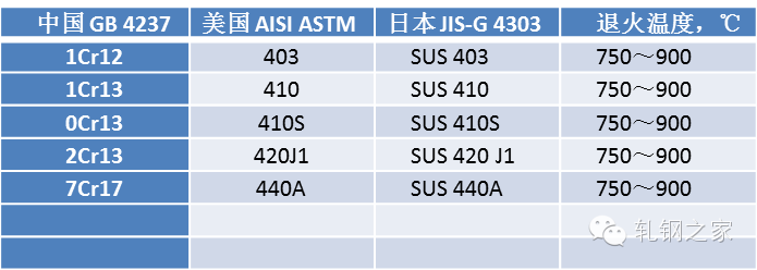 表 4:鐵素鐵不銹鋼的參考退火溫度