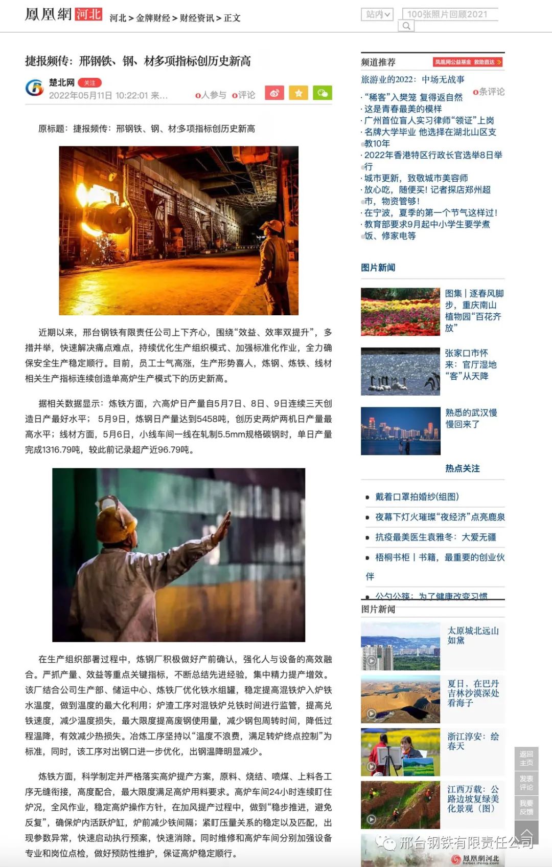近期以來,邢臺鋼鐵有限責任公司上下齊心,圍繞“效益、效率雙提升”,多措并舉,快速解決痛點難點,持續(xù)優(yōu)化生產(chǎn)組織模式、加強標準化作業(yè),全力確保安全生產(chǎn)穩(wěn)定順行。目前,員工士氣高漲,生產(chǎn)形勢喜人,煉鋼、煉鐵、線材相關(guān)生產(chǎn)指標連續(xù)創(chuàng)造單高爐生產(chǎn)模式下的歷史新高。