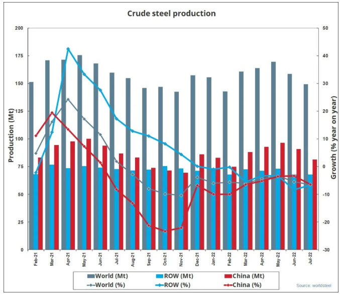 來源:世界鋼鐵協(xié)會 發(fā)布時間:2022年08月24日 點擊數(shù):