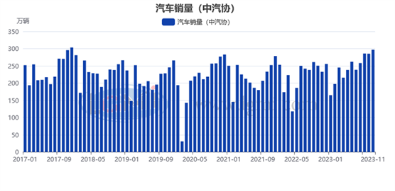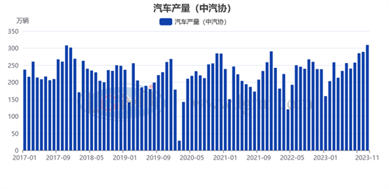 據(jù)中國(guó)汽車(chē)工業(yè)協(xié)會(huì)統(tǒng)計(jì)數(shù)據(jù)顯示,2023年11月份,汽車(chē)產(chǎn)銷(xiāo)分別達(dá)到309.3萬(wàn)輛和297萬(wàn)輛,環(huán)比分別增長(zhǎng)7%和4.1%,同比分別增長(zhǎng)29.4%和27.4%,產(chǎn)銷(xiāo)量連續(xù)3個(gè)月創(chuàng)當(dāng)月歷史同期新高。1-11月,汽車(chē)產(chǎn)銷(xiāo)累計(jì)完成2711.1萬(wàn)輛和2693.8萬(wàn)輛,同比分別增長(zhǎng)10%和10.8%。