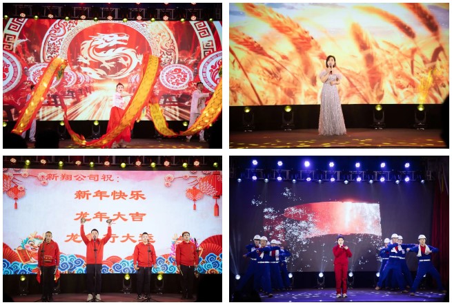 演出開始前,由各二級單位錄制的《鋼鐵工人大拜年》視頻為聯(lián)歡會開幕烘托出濃厚的節(jié)日喜慶氣氛。煉鐵廠王艷等的開場舞《中國龍,舞起來》歡樂、動感;儲運中心侯伊坤的獨唱《風(fēng)吹麥浪》唯美、清新;新翔公司楊立興等的三句半表演《賀龍年》則輕松、詼諧;煉鐵廠劉士沛與新入職年輕人“以老帶新”的歌伴舞《時代號子——致敬邢鋼人》點燃起晚會現(xiàn)場觀眾的火熱激情。質(zhì)量控制部孫濤的薩克斯獨奏《she》、焦化廠申學(xué)軍的《戲曲串燒》、線材廠魏東的獨唱《兄弟干杯》、財務(wù)部楊佳薏的獨舞《星河嘆》、銷售公司田芳等的小合唱《不放棄》、煉鋼廠甄建軍、張康健的二重唱《可能》、動力廠董巖、陳險峰等的歌舞《最親的人》等節(jié)目繽紛呈現(xiàn),展示了邢鋼人多才多藝的別樣風(fēng)貌;煉鐵廠楊曉霞等的情景劇《歲月》以兩代人的視角,抒發(fā)了企業(yè)歷史變遷中不變的邢鋼人情懷;賈凌雪、陳燕、魏秋紅、李濟興聯(lián)袂表演的詩朗誦《沉香·甲子邢鋼》,回顧邢鋼65年跋涉歷程,寄語新邢鋼美好未來;公司總經(jīng)理彭世丹等中高層領(lǐng)導(dǎo)的合唱《眾人劃槳開大船》把整場聯(lián)歡會推向高潮,臺上歌聲鏗鏘,臺下掌聲相和,激發(fā)起邢鋼人“眾志成城創(chuàng)大業(yè),凝心聚力贏未來”的壯志豪情。聯(lián)歡會在《陽光路上》的歌聲中落下帷幕,預(yù)示著新邢鋼的未來發(fā)展一路陽光、前程錦繡!
