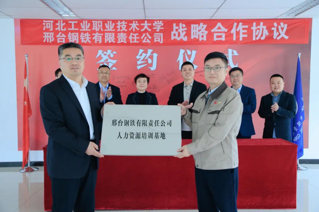 在與會(huì)人員的共同見(jiàn)證下,雙方代表簽訂了校企合作協(xié)議。還分別進(jìn)行了“河北工業(yè)職業(yè)技術(shù)大學(xué)大學(xué)生就業(yè)基地”、“河北工業(yè)職業(yè)技術(shù)大學(xué)實(shí)踐教學(xué)基地”、“邢臺(tái)鋼鐵有限責(zé)任公司人力資源培訓(xùn)基地”授牌互認(rèn)。