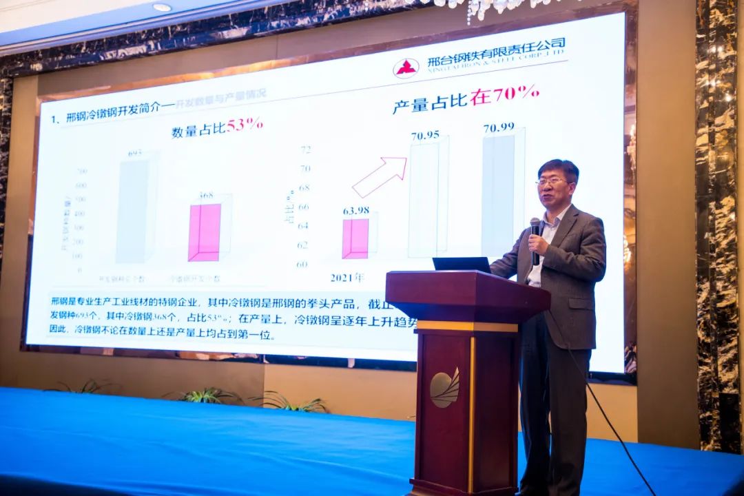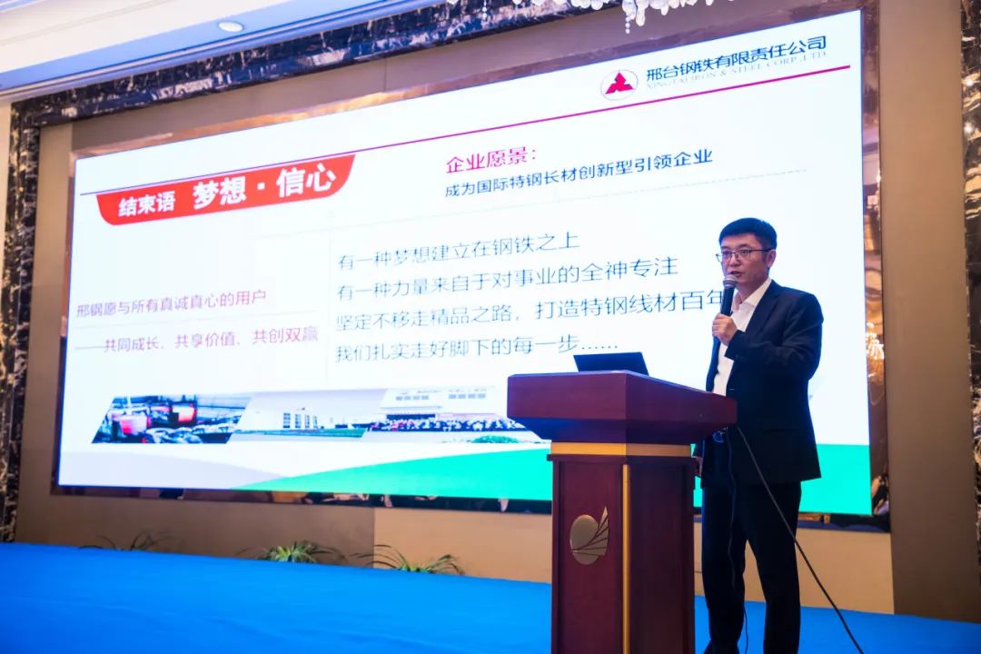 期間,邢鋼總經(jīng)理彭世丹作了《新規(guī)劃引領(lǐng)新未來,新邢鋼再鑄新輝煌》報(bào)告,邢鋼董事長助理、總工程師田新中作了《緊固件用鋼的開發(fā)和質(zhì)量控制技術(shù)》報(bào)告。浙江國檢檢測(cè)技術(shù)公司副總經(jīng)理王慧、晉億公司質(zhì)量技術(shù)部經(jīng)理張勇、中化創(chuàng)新研究院雙碳咨詢事業(yè)部總經(jīng)理劉通、上善院研發(fā)工程師楊現(xiàn)亮、南京工程學(xué)院教授趙秀明、上海納特汽車標(biāo)準(zhǔn)件公司研發(fā)總監(jiān)李軍正分別進(jìn)行了行業(yè)技術(shù)報(bào)告分享。