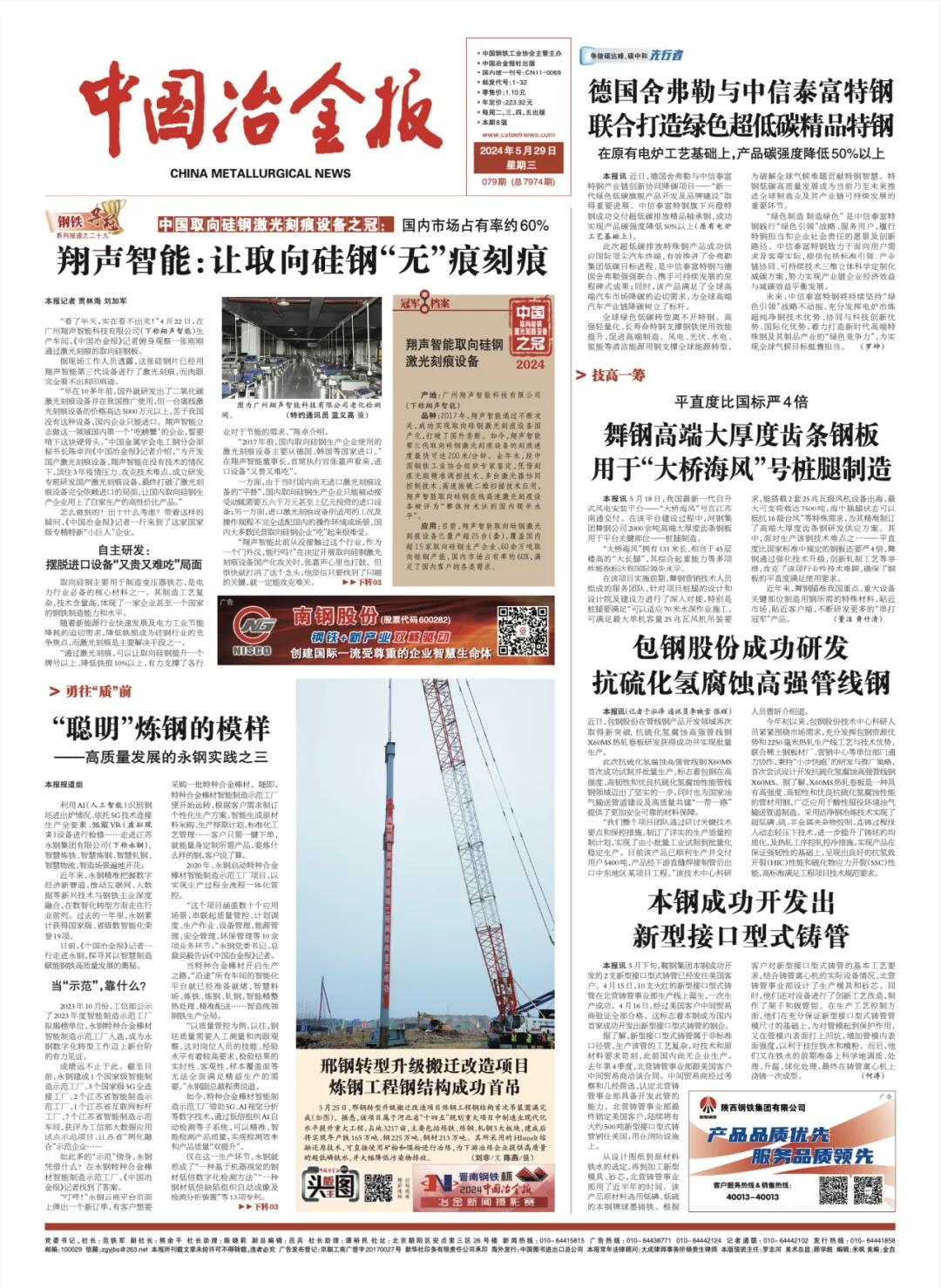 【媒體報道】中國冶金報“頭版主圖”報道邢鋼轉(zhuǎn)型升級項目進(jìn)展
