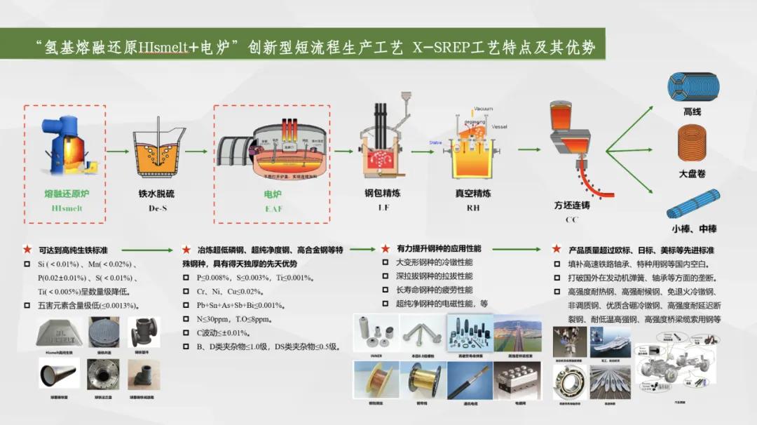 一是布局“碳達(dá)峰、碳中和”,實(shí)現(xiàn)綠色化,引領(lǐng)品牌可持續(xù)發(fā)展。采用的“熔融還原+電爐煉鋼”短流程工藝,取消了燒結(jié)、球團(tuán)、焦化、預(yù)還原等工藝環(huán)節(jié),為世界首創(chuàng);和長流程工藝相比,預(yù)計(jì)可減少二氧化硫、氮氧化物排放38%,減少顆粒物排放89%,建廠即達(dá)到A級(jí)企業(yè)標(biāo)準(zhǔn),實(shí)現(xiàn)綠色冶金,對(duì)我國乃至世界鋼鐵行業(yè)發(fā)展具有創(chuàng)新性和引領(lǐng)示范的意義,是鋼鐵行業(yè)綠色轉(zhuǎn)型的典范。