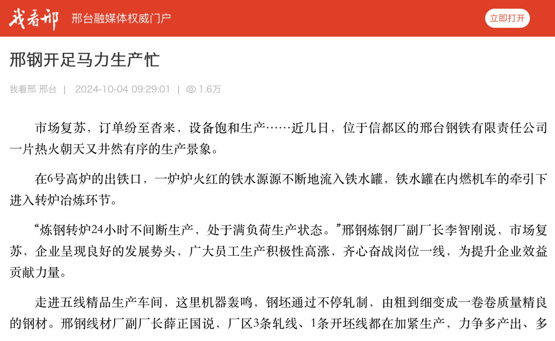 在 6 號高爐的出鐵口,一爐爐火紅的鐵水源源不斷地流入鐵水罐,鐵水罐在內(nèi)燃機車的牽引下進(jìn)入轉(zhuǎn)爐冶煉環(huán)節(jié)。“煉鋼轉(zhuǎn)爐 24 小時不間斷生產(chǎn), 處于滿負(fù)荷生產(chǎn)狀態(tài)。”邢鋼煉鋼廠副 廠長李智剛說,市場復(fù)蘇,企業(yè)呈現(xiàn)良好的發(fā)展勢頭,廣大員工生產(chǎn)積極性高漲,齊心奮戰(zhàn)崗位一線,為提升企業(yè)效益貢獻(xiàn)力量。走進(jìn)五線精品生產(chǎn)車間,這里機器轟鳴,鋼坯通過不停軋制,由粗到細(xì)變成一卷卷質(zhì)量精良的鋼材。邢鋼線材廠副廠長薛正國說,廠區(qū) 3 條軋線、 1 條開坯線都在加緊生產(chǎn),力爭多產(chǎn) 出、多收益。近年來,邢鋼致力于轉(zhuǎn)型升級促進(jìn)高質(zhì)量發(fā)展,專注于工業(yè)新材料的研發(fā)制造,公司優(yōu)特鋼比例達(dá) 100%,高新產(chǎn)品達(dá) 70%以上,擁有冷鐓鋼、純鐵、彈簧鋼等 18 大類 600 多個鋼種 3500 多種產(chǎn)品,廣泛應(yīng)用于汽車、大跨 度橋梁、鐵路等國家優(yōu)先發(fā)展的領(lǐng)域。高品質(zhì)特鋼產(chǎn)品讓邢鋼不斷贏得市場認(rèn)可。前不久,在上海國際緊固件 工業(yè)博覽會和 2024 印尼雅加達(dá)東南亞緊固件專業(yè)展上,邢鋼與巴西、越南等多個國家的企業(yè)達(dá)成合作意向;邢鋼的“新能源汽車用高強度超高潔凈度冷鐓鋼技術(shù)創(chuàng)新及應(yīng)用”項目經(jīng)河北省質(zhì)量 文化協(xié)會選拔、中國質(zhì)量協(xié)會推薦,成功入圍 2024 年度國際質(zhì)量創(chuàng)新大賽。“邢鋼專注高端鋼材生產(chǎn),市場競爭力強,訂單充足,未來一個月的訂單已經(jīng)基本排滿,多種規(guī)格產(chǎn)品訂單量增長。”在五線中控室,薛正國在電腦上翻看排單表,信心十足地說“,在市場大環(huán)境穩(wěn)定的情況下,訂單量有保證。”在采訪中,五線精品生產(chǎn)車間主任張志斌說,火力全開的生產(chǎn)景象令人振奮,他將把自己 20 年的工作經(jīng)驗運用到生產(chǎn)中去,推動鋼材標(biāo)準(zhǔn)化生 產(chǎn),滿足客戶的需求,不斷提升產(chǎn)品質(zhì)量和邢鋼品牌滿意度。
