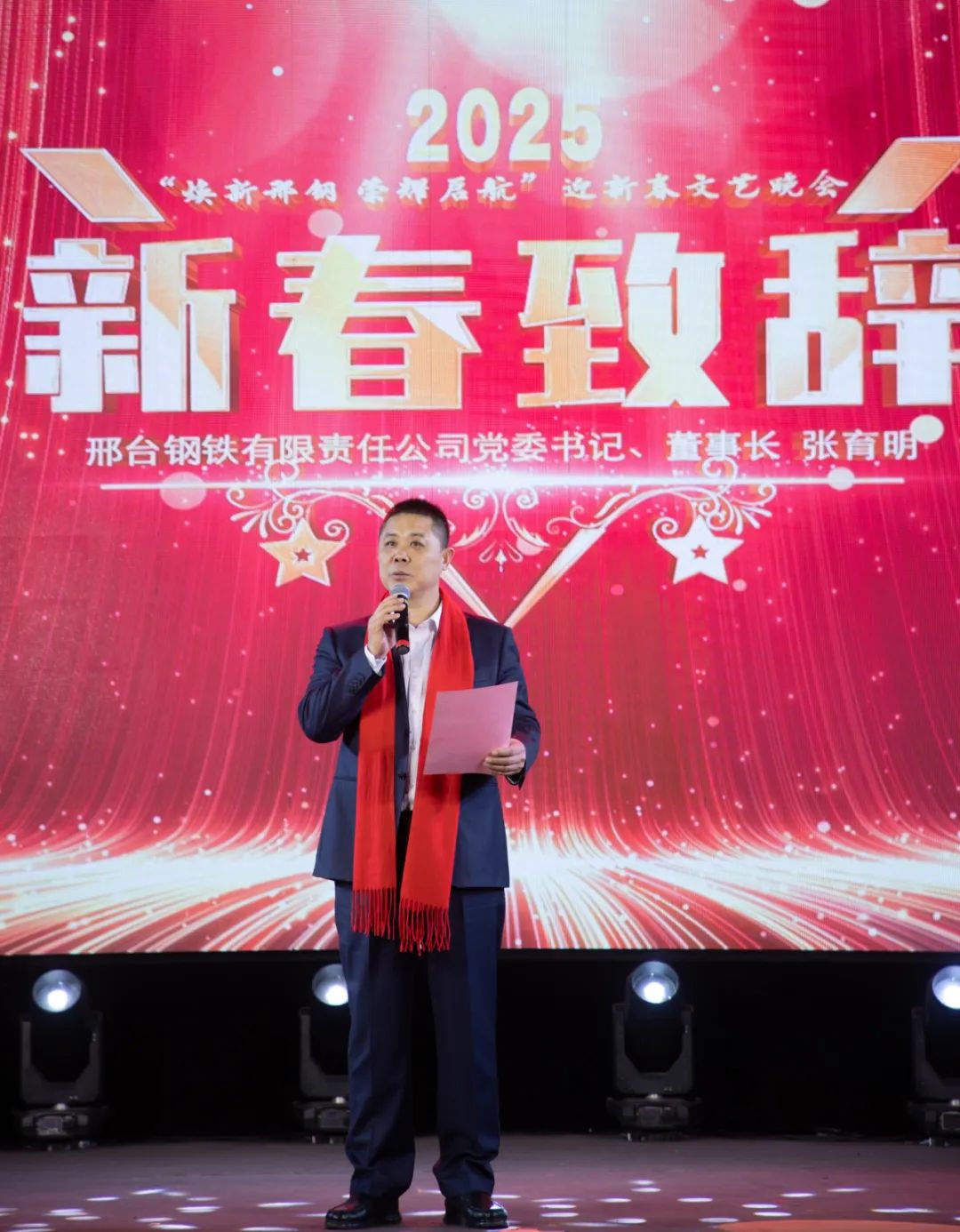 歲序更替,華章日新。1月22日,以“煥新邢鋼,榮耀啟航”為主題的邢鋼2025年新春聯(lián)歡會在公司會議中心炫彩啟帷。公司黨委書記、董事長張育明攜公司全體中高層領(lǐng)導(dǎo)與2024年受表彰的先進(jìn)個人、員工代表歡聚一堂,喜迎乙巳年新春。